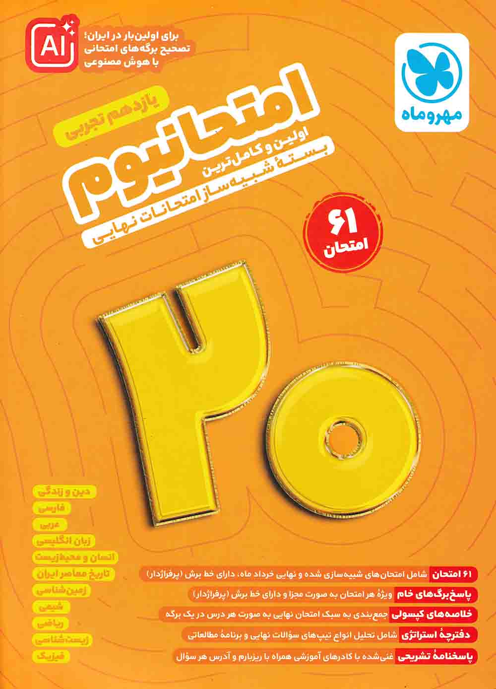 کتاب امتحانیوم یازدهم تجربی مهروماه فروش در كتاب فروشی رستگار واقع در استان گيلان شهر رشت