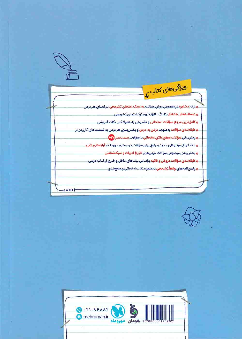 کتاب بیست پک پرسوال علوم و فنون ادبی 1 دهم مهروماه فروش در كتاب فروشی رستگار واقع در استان گیلان شهر رشت