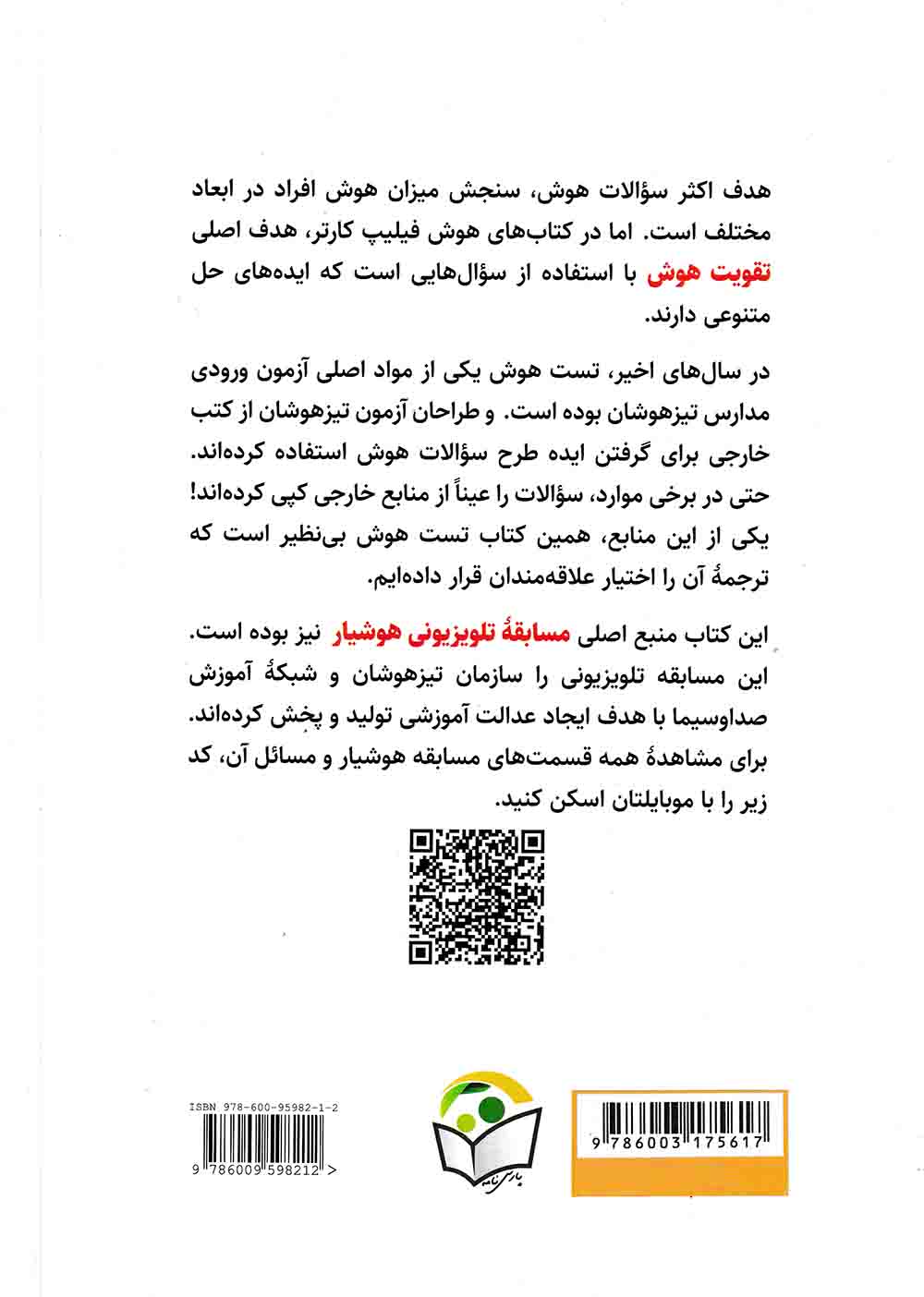 کتاب تست هوش بی نظیر پارس نامه فروش در كتاب فروشی رستگار واقع در استان گيلان شهر رشت