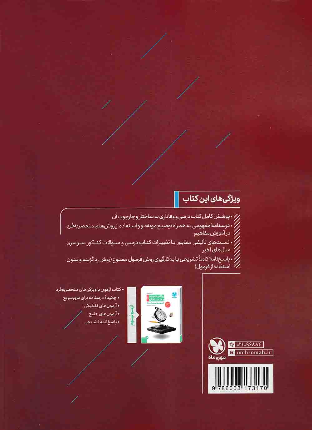 کتاب ریاضیات پایه و حسابان جامع کنکور مهروماه فروش در كتاب فروشی رستگار واقع در استان گیلان شهر رشت