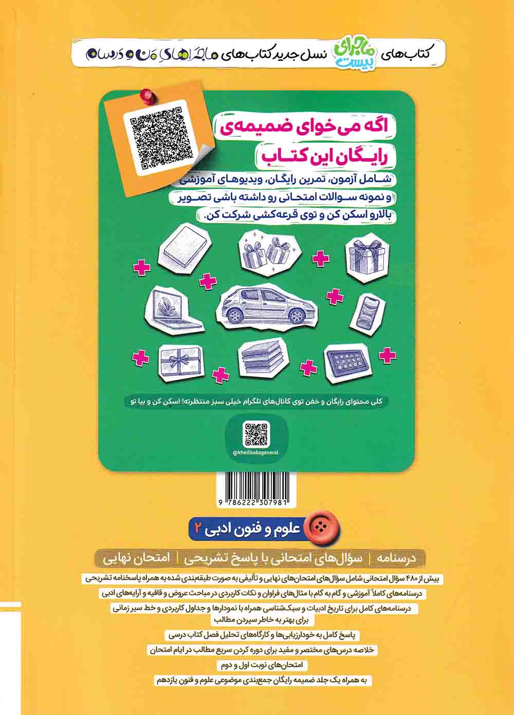 كتاب ماجرای بیست علوم و فنون ادبی 2 یازدهم انسانی خیلی سبز فروش در كتاب فروشي رستگار واقع در استان گيلان شهر رشت