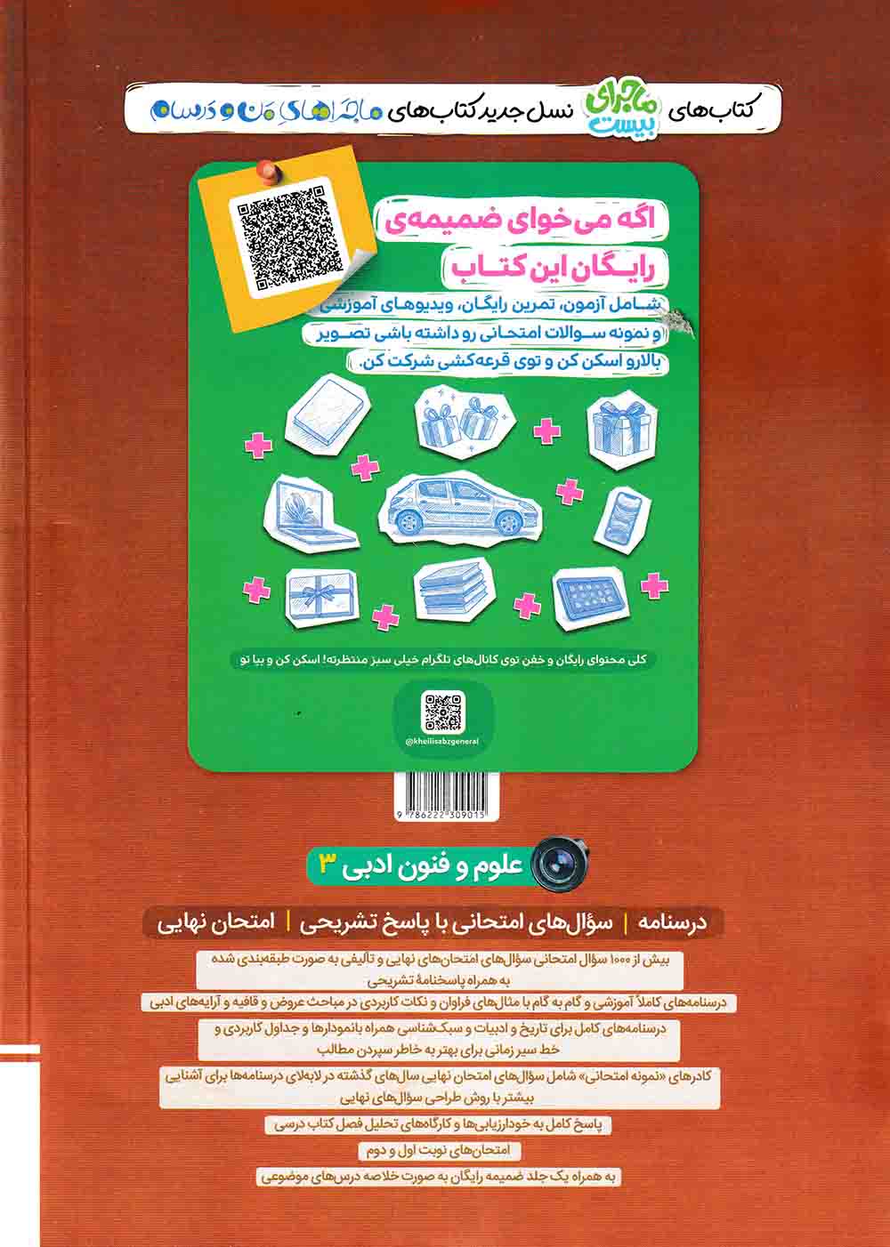 کتاب ماجرای بیست علوم و فنون ادبی 3 دوازدهم انسانی خیلی سبز فروش در كتاب فروشی رستگار واقع در استان گیلان شهر رشت