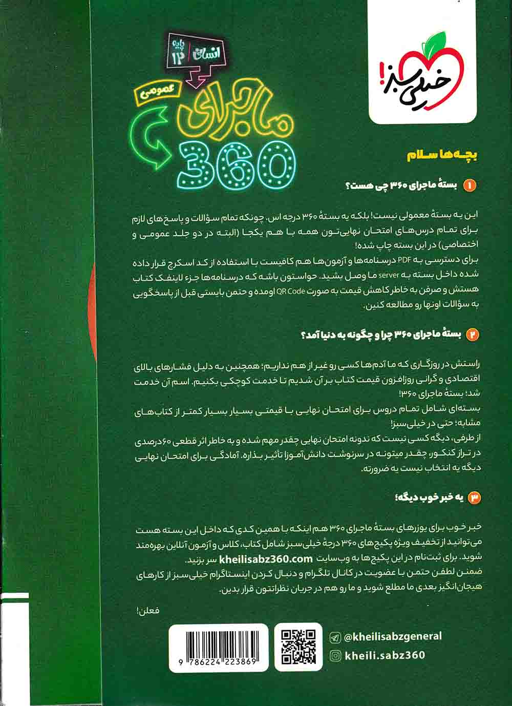 كتاب ماجرای دروس عمومی دوازدهم 360 انسانی خیلی سبز فروش در كتاب فروشی رستگار واقع در استان گيلان شهر رشت