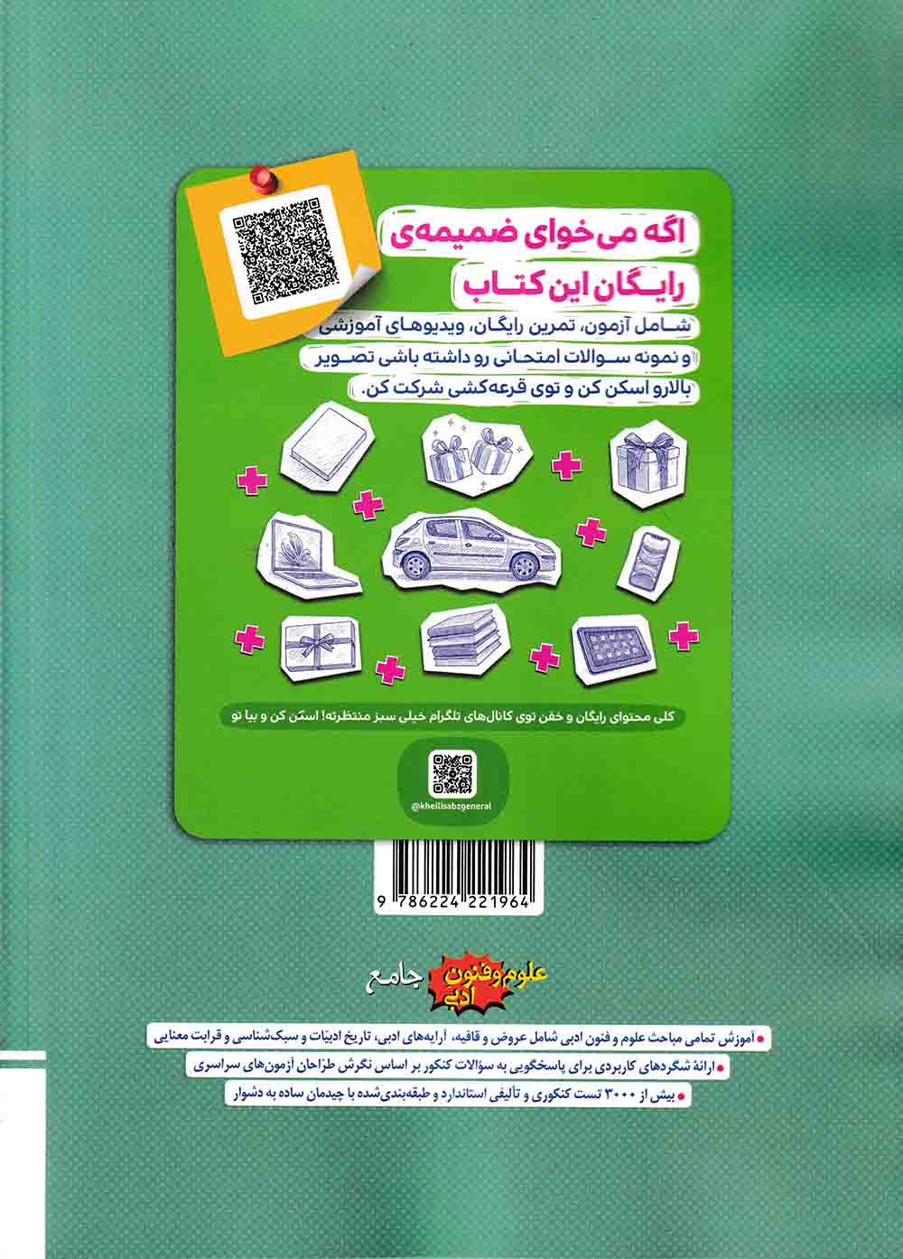 کتاب پرسش های چهار گزینه ای علوم و فنون ادبی جامع کنکور انسانی جلد دوم درسنامه خیلی سبز فروش در كتاب فروشی رستگار واقع در استان گيلان شهر رشت